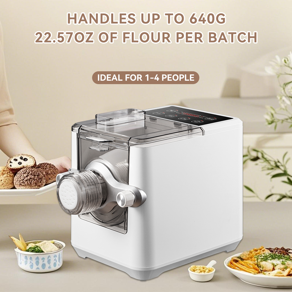 With a generous 640g dry flour capacity, this machine is ideal for larger households or those who enjoy batch cooking. Each batch yields a substantial amount of fresh pasta, saving time and effort while ensuring you always have homemade noodles on hand.