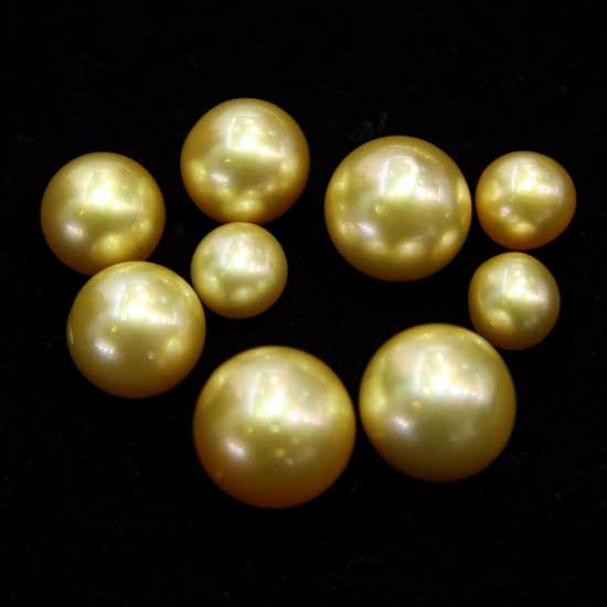 Displayed here is a south sea pearl with a golden hue. Various sizes are available for selection. This south sea pearl flaunts its natural beauty.