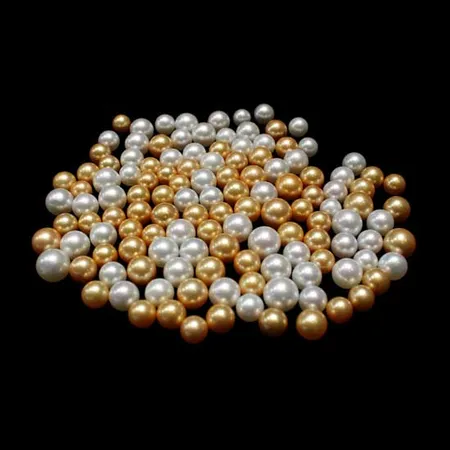 Showcased are golden and white South Sea pearls in plump spheroidal shapes. Each of them reflects its strong luster that appeals to everyone. They are simply perfect for manufacturing captivating pearl necklaces and bracelets.