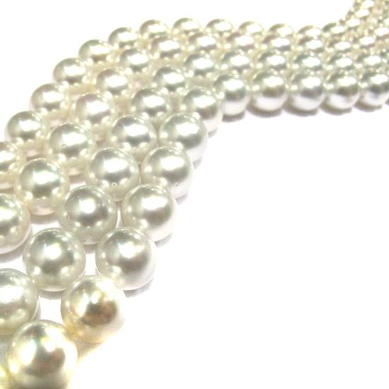 These are South Sea pearl necklaces for ladies and women. Threaded with pure white round pearls in gradudated sizes, the necklaces show an elegant and refined feature which every lady and woman will fall in love with.