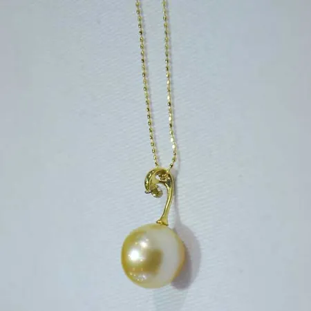 This South Sea pearl necklace boasts a simple yet elegant style. The single pearl pendant exhibits ravishing luster. Its glamor is accentuated with a delicate faceted diamond. This necklace is ideal for ladies of different ages.