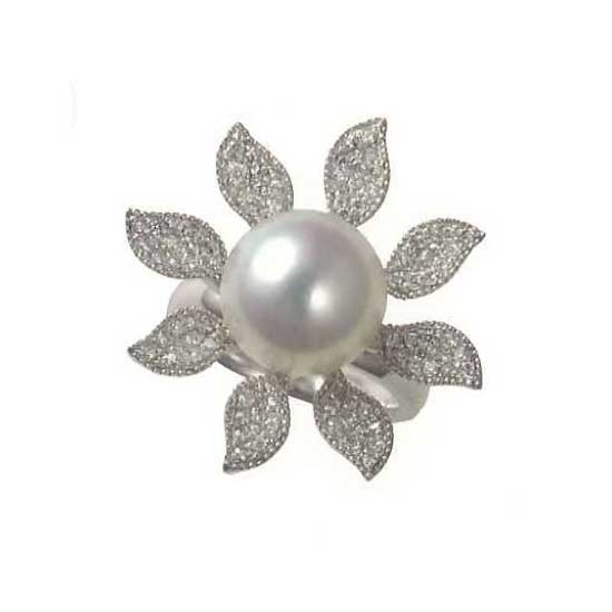 The ravishing white gold ring features a blossomy floral design. The petals are embedded with dazzling diamonds to shine with utmost brilliance. A remarkable south sea pearl is embellished as the flower bud, expressing exceptional elegance with excellent luster.