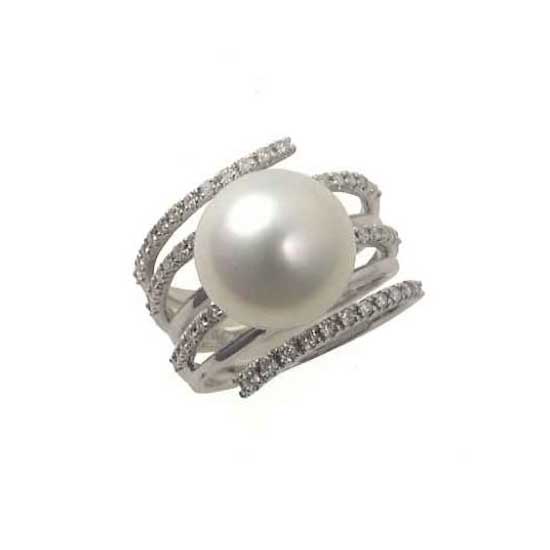 The fabulous ring features a spiral-like band embedded with dazzling diamonds. A remarkable south sea pearl is lodged in to express exceptional elegance and vividness with excellent luster.