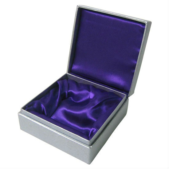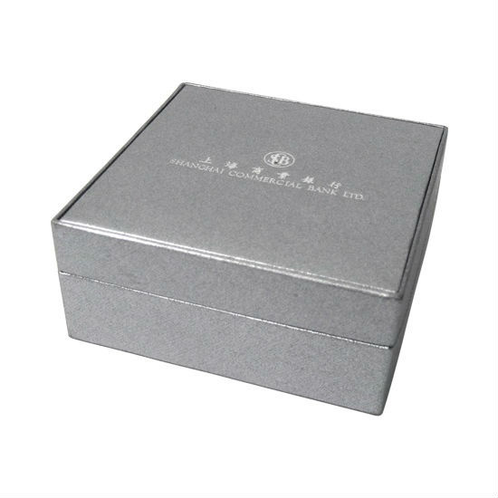 This square box is made of paper over 1.5 mm cardboard. It has a silvery appearance with foil stamping logo in same tone. It offers a tidy storage solution for jewelries, keepsakes and souvenirs.