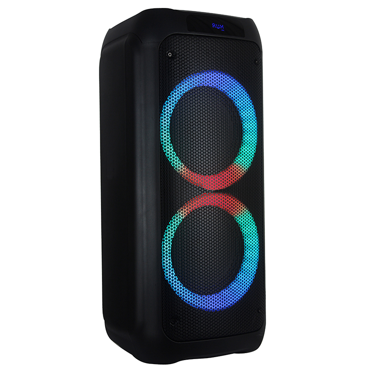 with bluetooth/USB/TF/FM/Remote control/7.4V 3600mah lithium battery/6-band EQ/AUX input /two microphone input jack/one guitar input jack/with light on woofer/RMS:40W