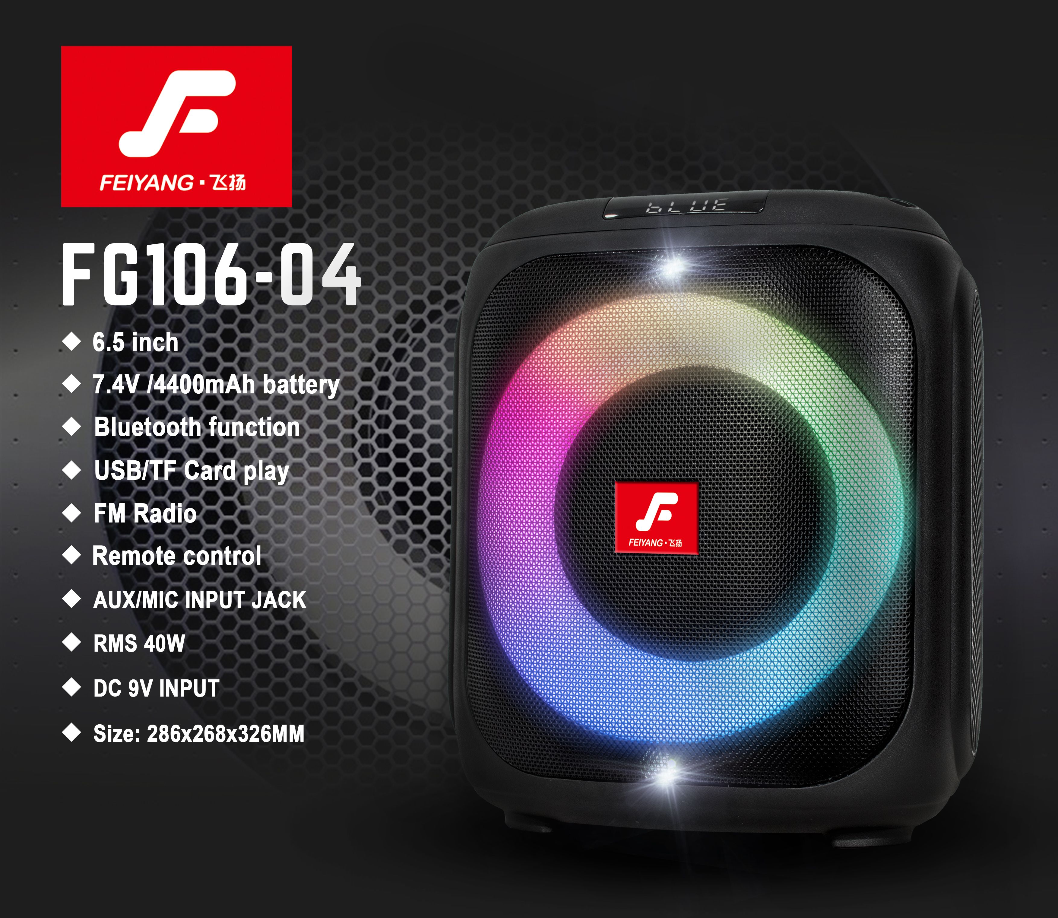 Bluetooth/USB/TF/FM/REC/Remote control/7.4V/4400mAh battery/AUX/MIC Input jack/DC 9V 2A/RMS:40W