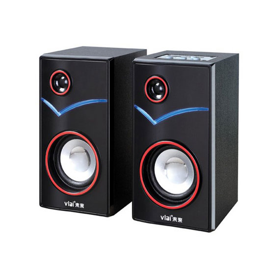This is a pair of loudspeakers in black with blue and red accents. Providing excellent sound effects, it is suitable for playing all kinds of music for you to enjoy music at home. Well engineered, this set promises reliable performance with high stability.