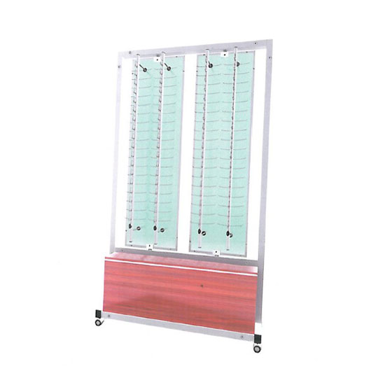 This spectacles display stand is designed to hold up to 144 glasses. Showcasing products in four vertical rows, this stand allows customers to view products easily. This user-friendly stand can also be moved around easily.