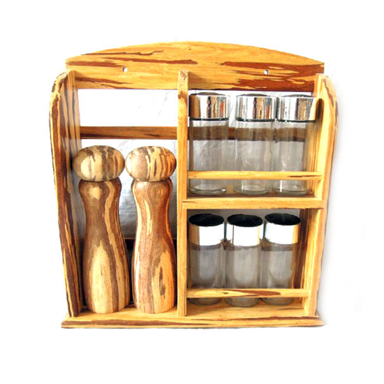 This spice rack helps you organize your spices and condiments neatly. This rack comes with separate compartments for condiment bottles and pepper shakers. It can also be mounted on wall to save your space.