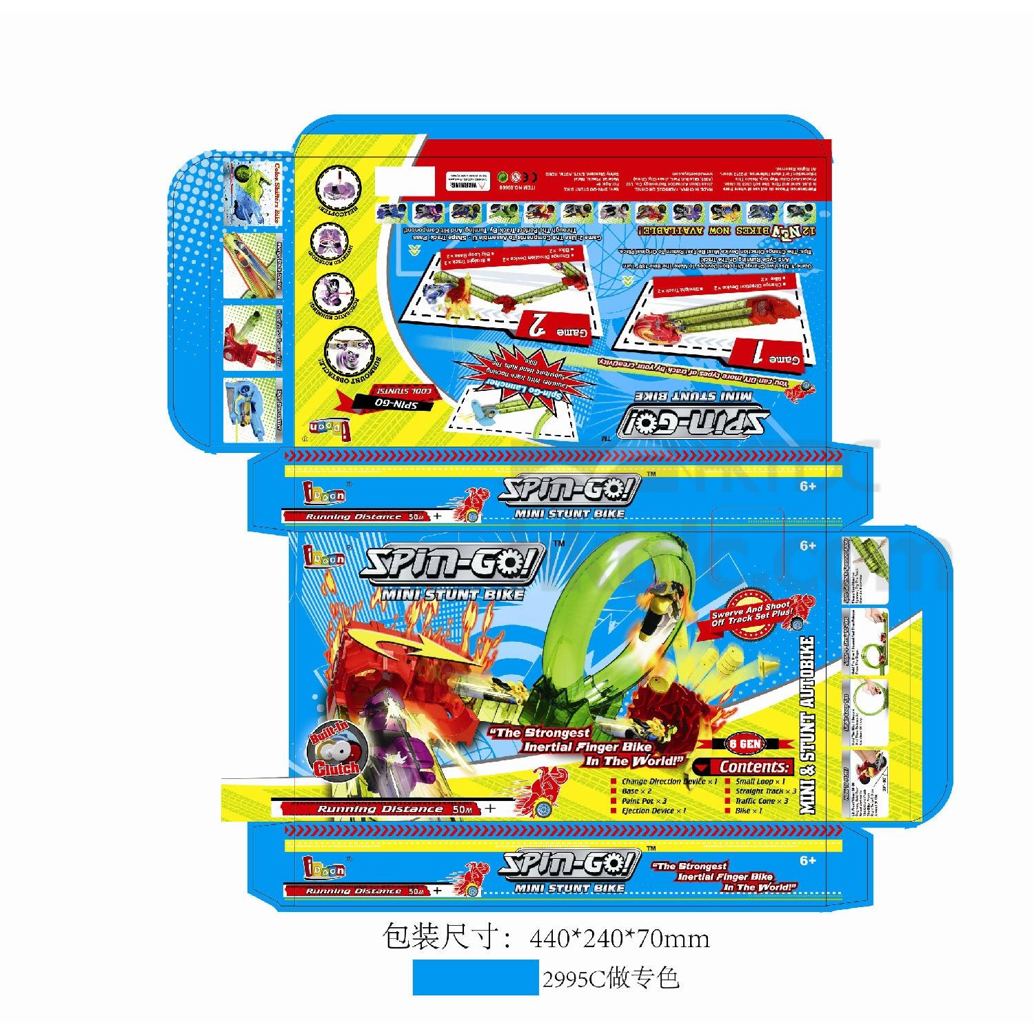 Spin-Go is friction bike without battery. Its running distance can reach 70 Meters! It has four stunt plays: surmount obstacle, acrobatic running, inverted rotation and helicopter on pen.
