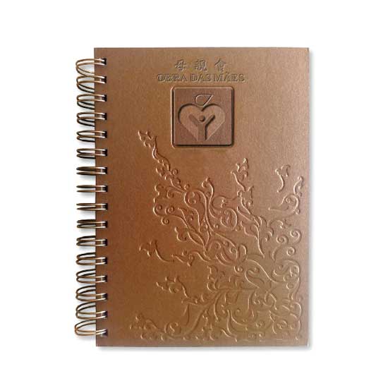 This dainty notebook features a spiral-bound design for ease of use. It features a logo and sophisticated curving patterns on the brown-hued cover. This well-designed notebook is sure to offer you a new writing experience.