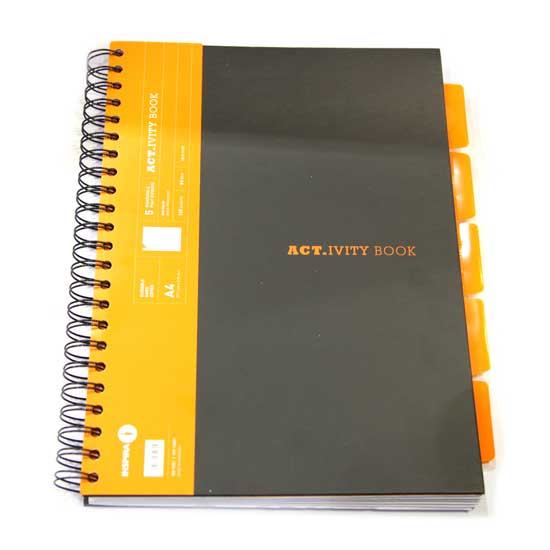 The exquisite notebook lets you easily flip through pages with its dependable spiral design. It features a standard A4 size and contains 125 sheets. The two-tone design of black and orange showcases a striking effect.