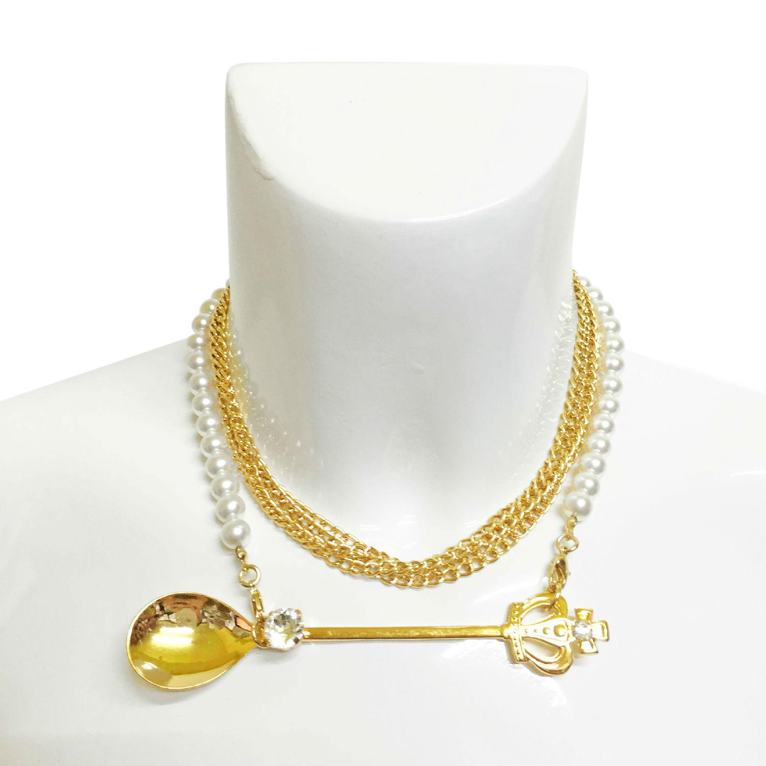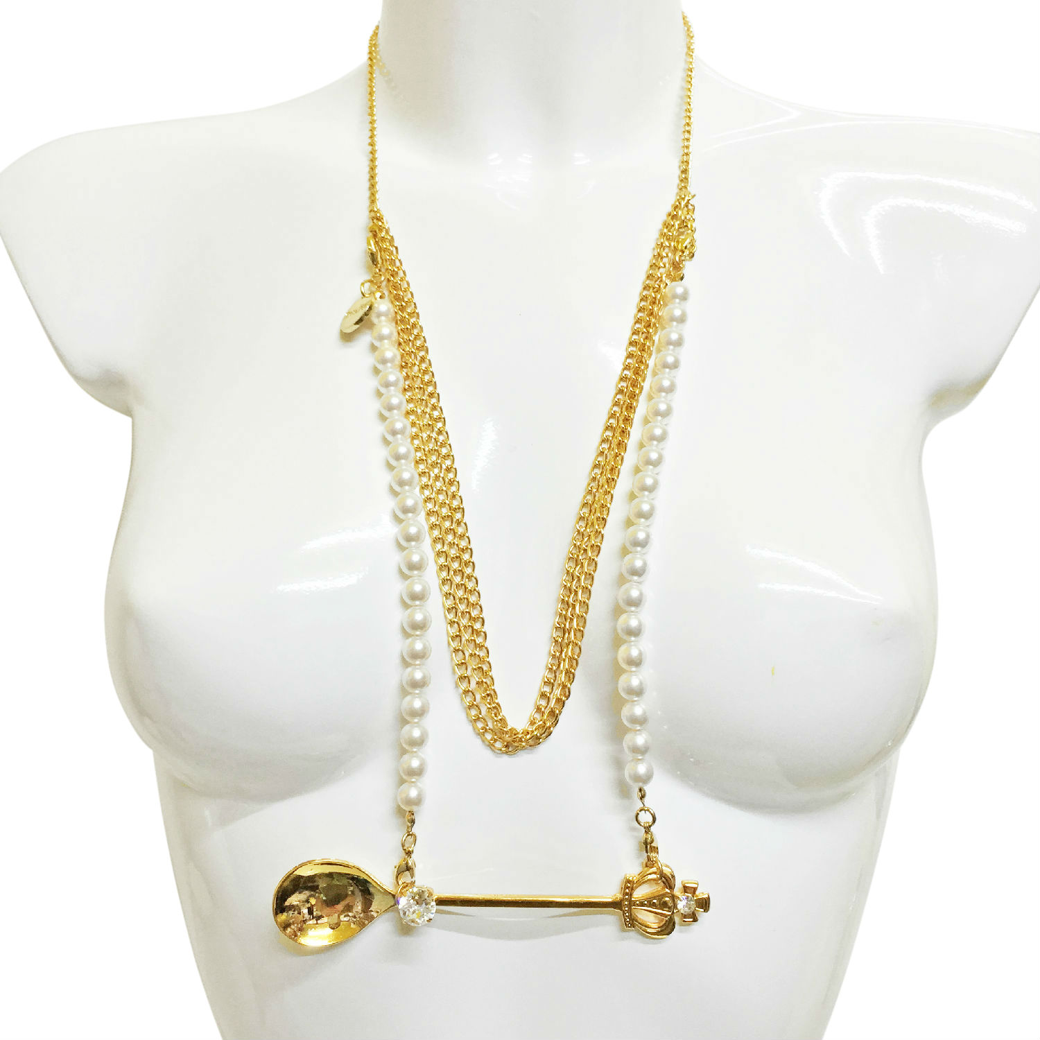 4 different ways to wear: can take of the golden chains inside, or make it to a long necklace.