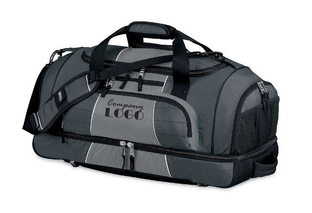 Two zippered, easy-clean PVC-lined wet end compartments roll up when not in use one end has ventilation grommets.