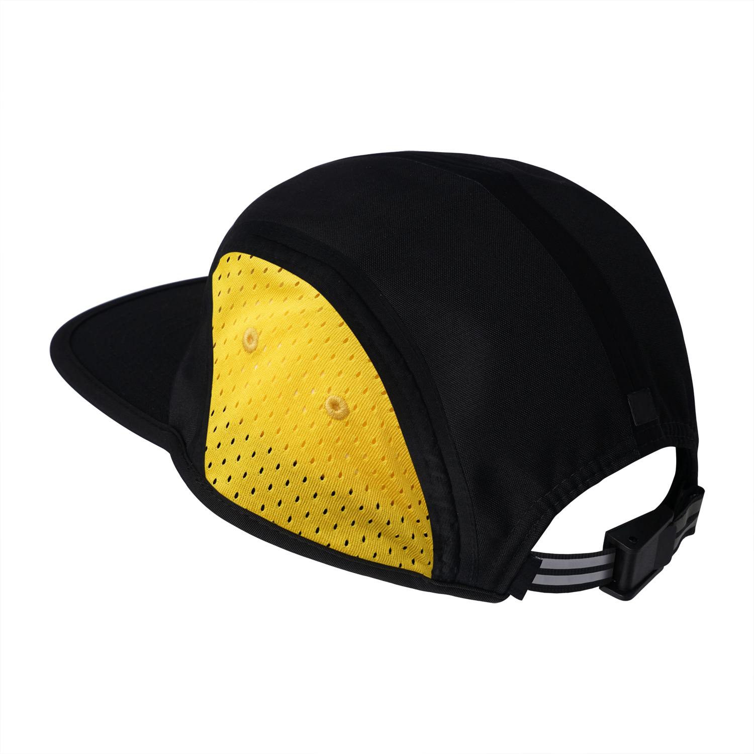 This sports cap is made with five panels seamless with reflective tape. The mesh fabric on the side panels provide breathability, allowing the circulation of air to cool down and get rid of sweat quickly. It features an adjustable closure on the back. It is suitable for outdoor activities and sports.