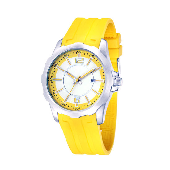 This is a sports watch that comes in a bright yellow color. With an alloy case and a silicone strap, this watch is waterproof. This watch houses a high quality movement for accuracy.