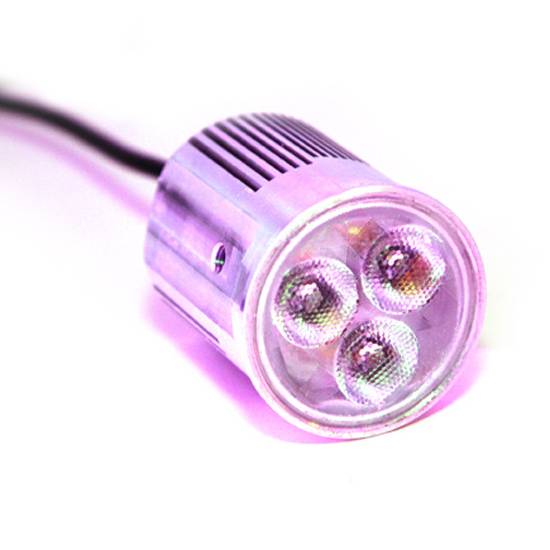 This is a colour-changing LED spotlight. This light is waterproof and is suitable for outdoor use. It is designed with aluminium casing, and Os coated in shiny pink. 3 units of LED lights are applied.
