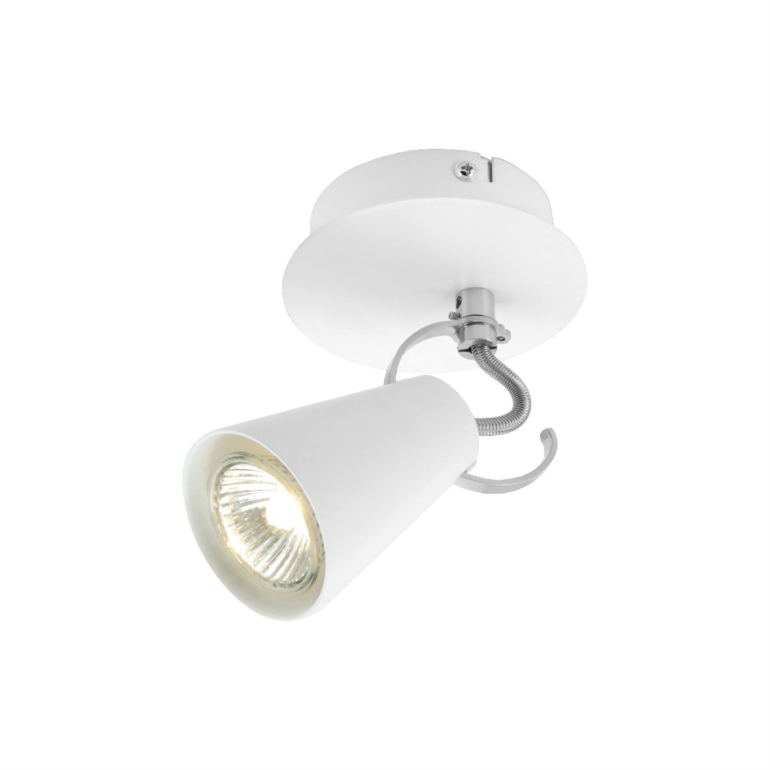 The highlighted spotlight has an adjustable lamp head with a round shaped base. It is suitable for using with GU10 bulbs and offers reliable lighting performance. This spotlight comes in an elegant design and is well-crafted to suit your lighting needs.