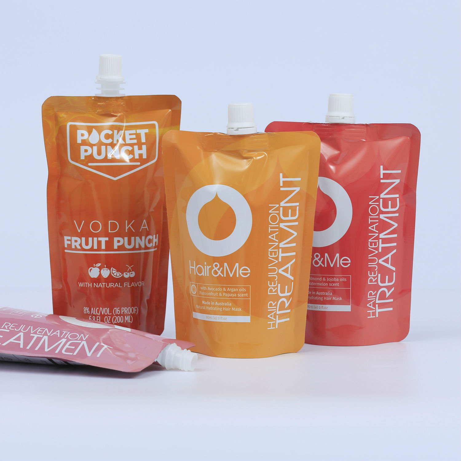 Package beverages, cosmetics and other liquid or powder products with this spout pouch. It has a rectangular shaped body made of plastic and has a spout on top for dispensing. This spout pouch can be printed with logos and promotional information on the exterior and offers excellent visual appeal to customers.