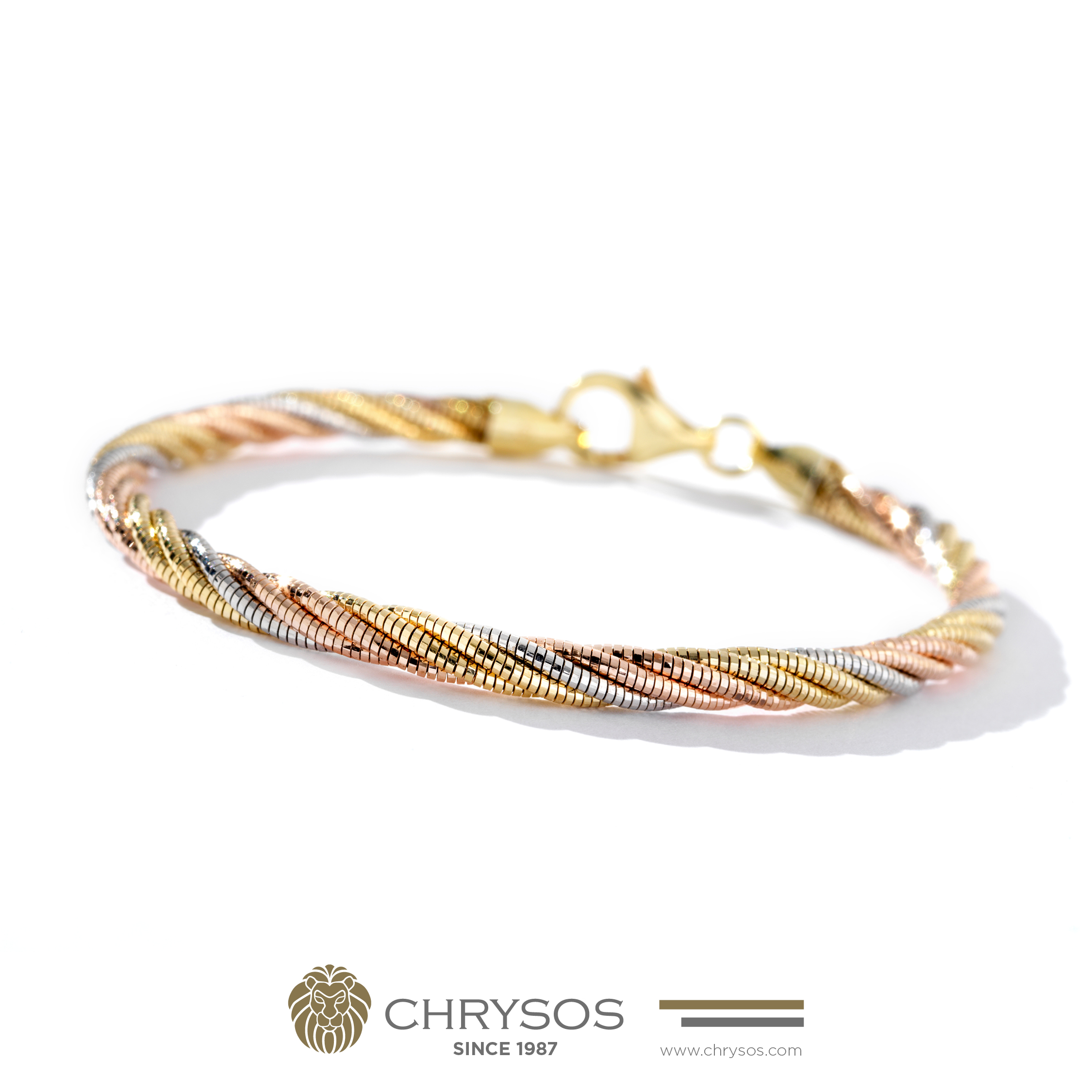 Multi strand chain in 18kt gold or 925 silver twisted in itself, available in various colors for an alway new look