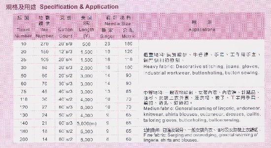 - Available in the following thicknesses, Tex no.: 14, 18, 21, 24, 27, 30, 45, 60, 70, 80, 105, 150, 270.