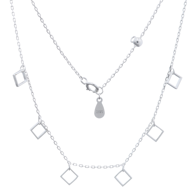 Square Charms Silver Plated 925 Adjustable Chain Necklace