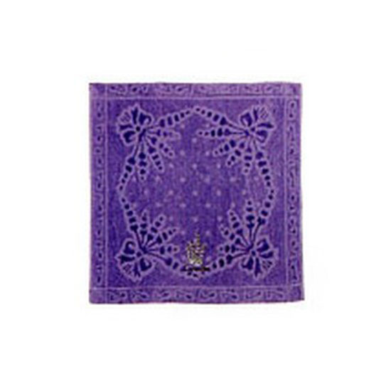This square handkerchief features a purple finish for a charming look. The ribbon patterns and floral trim add an elegant touch to the whole piece. It is ideal to carry in the pocket or purse.