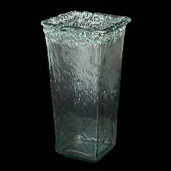 This glass vase is made of recycled glass. Despite that, this vase does not show any sign of oldness; on the contrary, the pattern on the vase looks awesome, as shown in the waterfall-like outlook. The glass is transparent, but it looks blurry, which might enhance the romantic feeling of the vase.