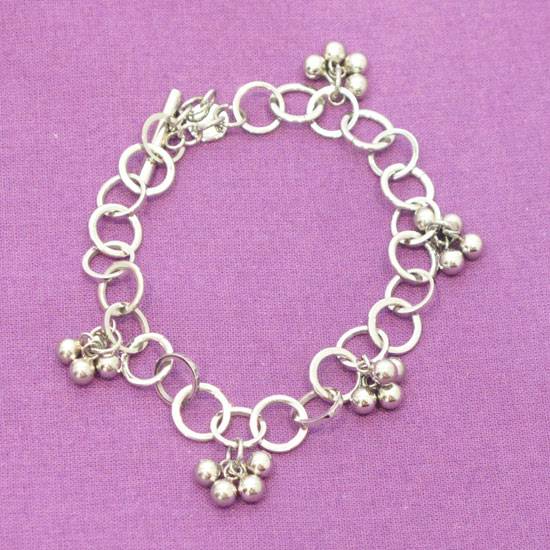 This is a costume jewellery bracelet made with stainless steel. The circle link is decorated with five clusters of balls, resembling clusters of grapes. Its trendy and easy-matching style makes it suitable for wearing every day.