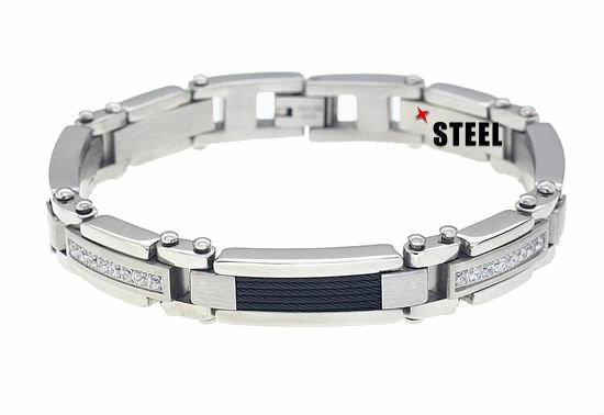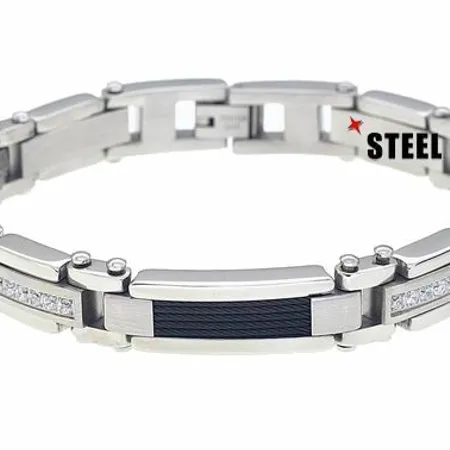 Versatile enough for everyday wear, this high-polish stainless steel bracelet comprises three delicate rows of IP black plating wires and glistening CZ stones of trimmed bar setting to please eyes. Its matching jewelry clasp finish further ensures quick fastening on wrist with style.
