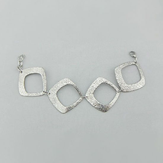 Displayed is a bracelet coming with four linked square plates with a cutout for an enticing look. Made of stainless steel, this succinct yet graceful bracelet is sure to last for a long time. Add a glamorous touch to your wrist with this silver-hued bracelet.