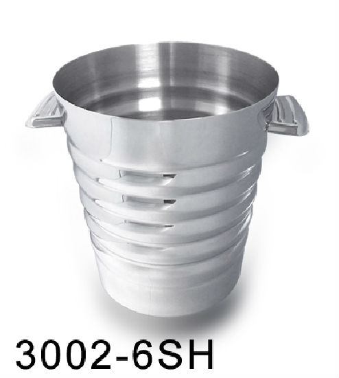 Wine Bottle Holder made of SS 18/8 in round shape shown in elegant style. This stainless steel bucket delivers a mirror housing, suggesting a trendy style for your promotional & advertising gifts.
