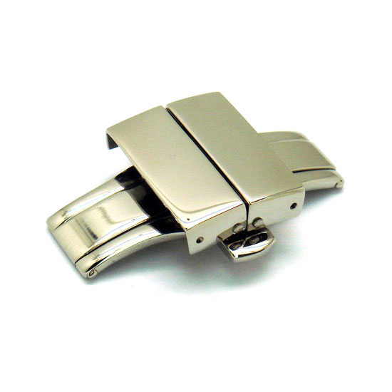 Displayed here is a solid butterfly buckle with a handsome appearance. The quality stainless steel construction promises long-lasting shine and beauty. Putting on and taking off your watch will be easy and quick with this butterfly buckle.