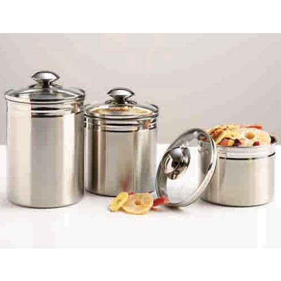 This adorable set features three pieces of stainless steel canisters in different sizes. The airtight lid protects the inner contents from moisture, light, air and odor. Coming in a polished finish, this stainless steel canister set keeps your pepper and salt fresh in a luxurious manner.