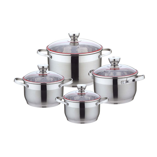 This is an 8-piece cookware set that is made of quality stainless steel. The non-stick interior allows easy cleaning. This elegant cookware set is an ideal addition to complete any kitchen.
