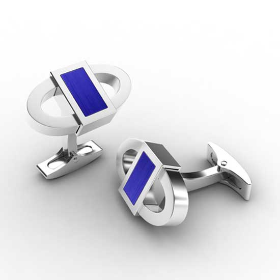 Outlined is a pair of stainless steel cuff links with a brushed finish to add stylishness. The rectangular blue agate decorations are embedded on the metal construction to add glamor. These elegant and fashionable cuff links are good accessories for men's shirts.