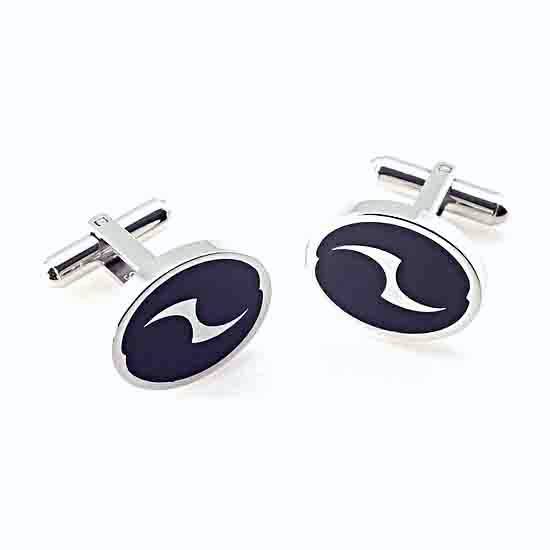 This pair of classy cufflinks comes with a flat round design. Each cufflink features a navy blue top panel with a stylish embossed pattern in shimmering silvery color. The stainless steel cufflinks brighten up your look with exquisite details.