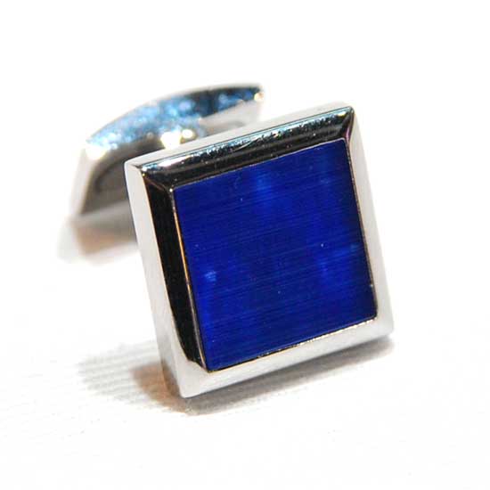 Displayed here is a pair of cufflinks that flaunts a subtle design. The cufflinks are made of stainless steel and are embellished with polished blue opals, showcasing a sense of refinement. This pair of cufflinks complements your stylish dress shirt nicely.
