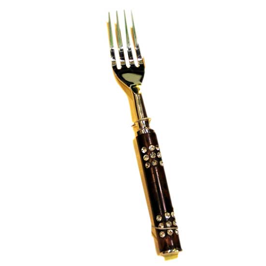 The polished fork boasts a glamorous round barrel grip adorned with shimmering stones. It is incredibly durable with impact and temperature resistance. The luxurious serving fork is great for everyday use and special occasions.
