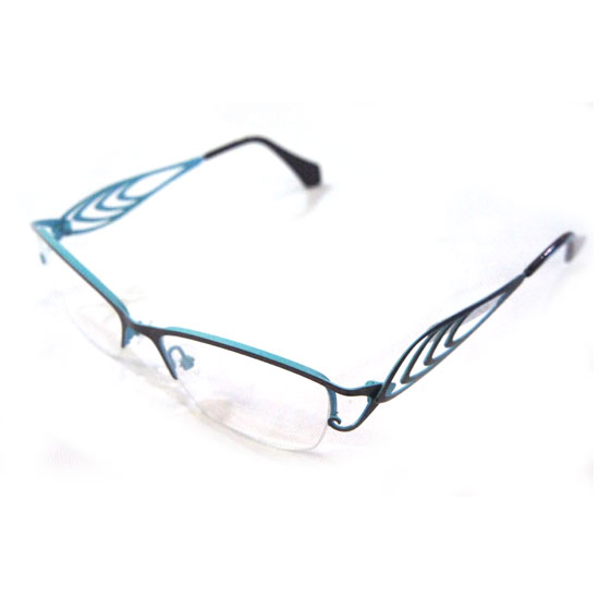 The stainless steel frame comes with a semi-rim design. The temples with delicate cutouts add interest to this frame. It also showcases a nice color combination.