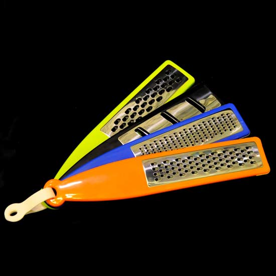 Featured here is a stainless steel grater set that includes blades for shredding, slicing, grating and zesting. The steel professional blades are durable and suitable for cutting vegetables and cheese. Simply add sophistication to your home kitchen with this colorful grater set.