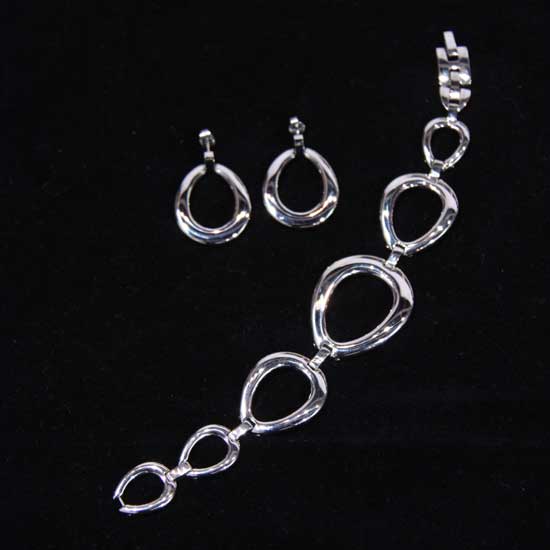 This ravishing jewelry set comes with a pair of earrings and a bracelet, chained up by polished pear-shaped links with a shiny finish. The silvery links of the bracelet are of different sizes, presenting the beauty of gradation. The outstanding bracelet comes with a clipper clasp. The awesome stainless steel jewelry set is a ladies' coveted collection.