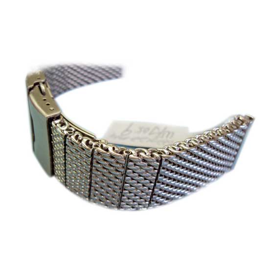 This mesh watch band comes with a silvery toned appearance for a modern touch. The stainless steel construction guarantees durability and sturdiness. The fold-over clasp ensures easy putting on and off for users.