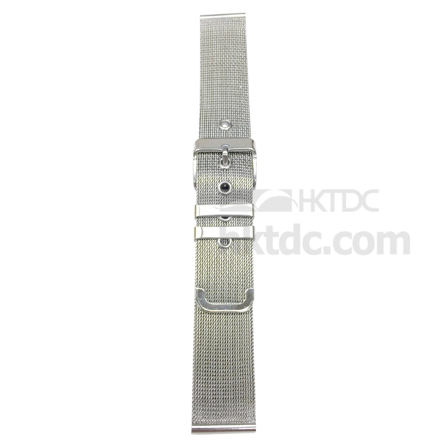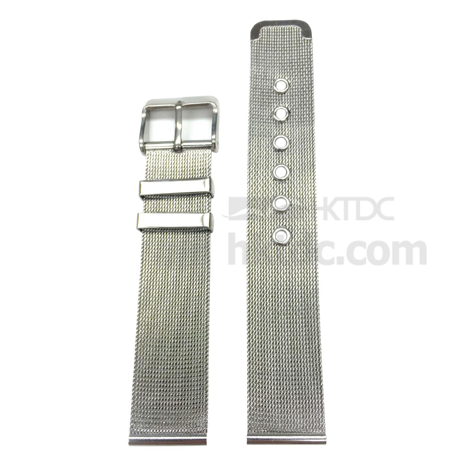 Simply classic, this Milanese mesh band blends particularly well with retro-inspired timepieces. Knitted and assembled with stainless steel cords and small parts, this strap boasts a rugged and durable construction. This strap comes with a buckle closure with 6 reinforced holes that allows for easy size adjustment.