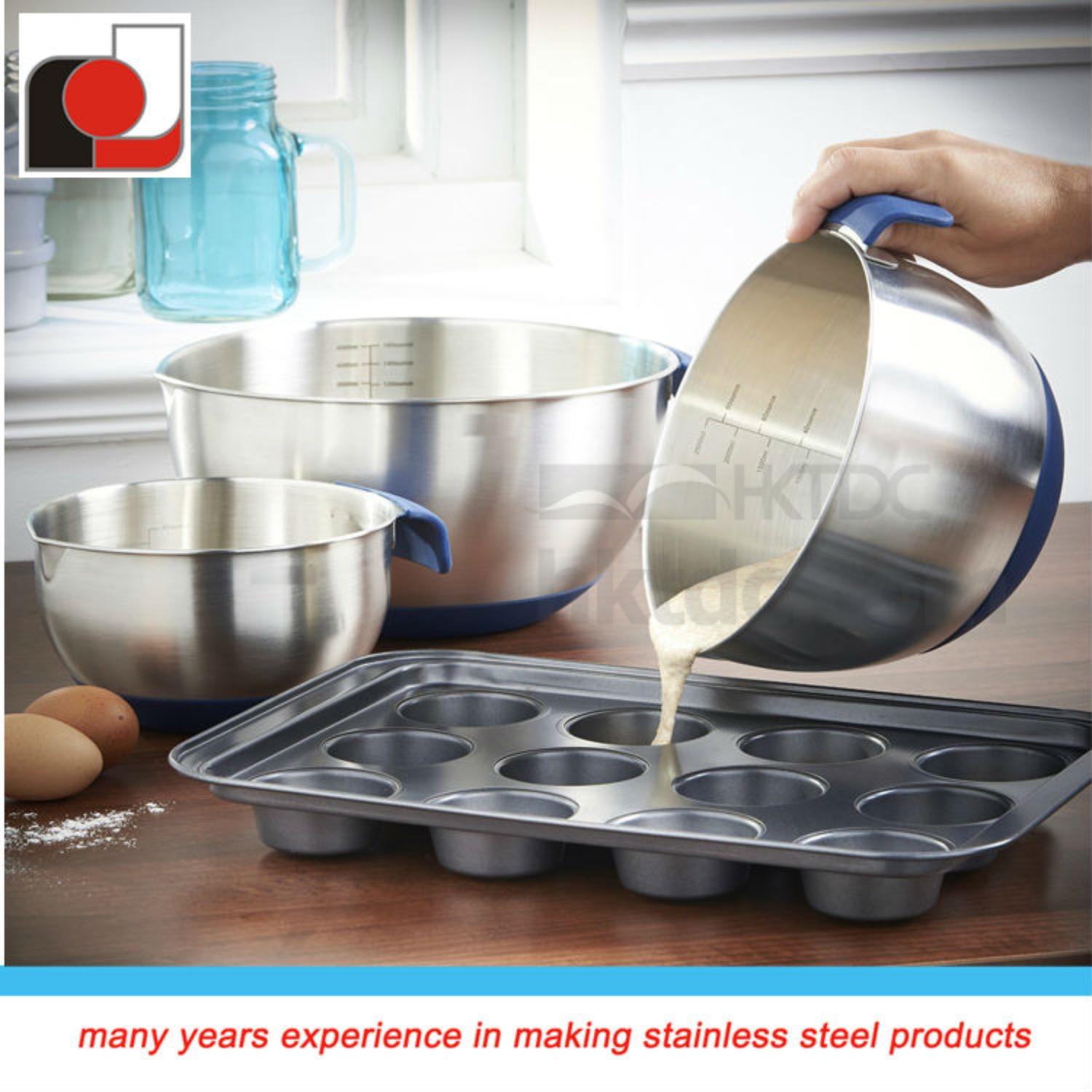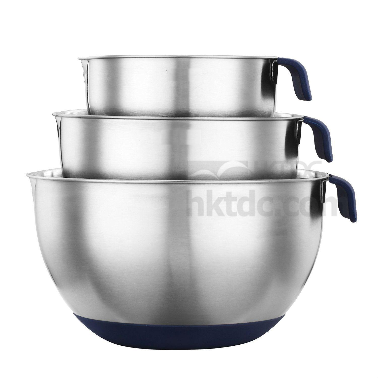 Stainless Steel Mixing Bowl Set with Pouring Spouts Handles and Non Slip Silicone Base