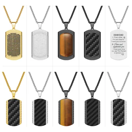 Stainless steel Pendant Necklace in double-sided. The style can be changed to one side with CNC setting zircon or carbon fiber, gem-stones and another side with customized LOGO in laser, engraved work art.