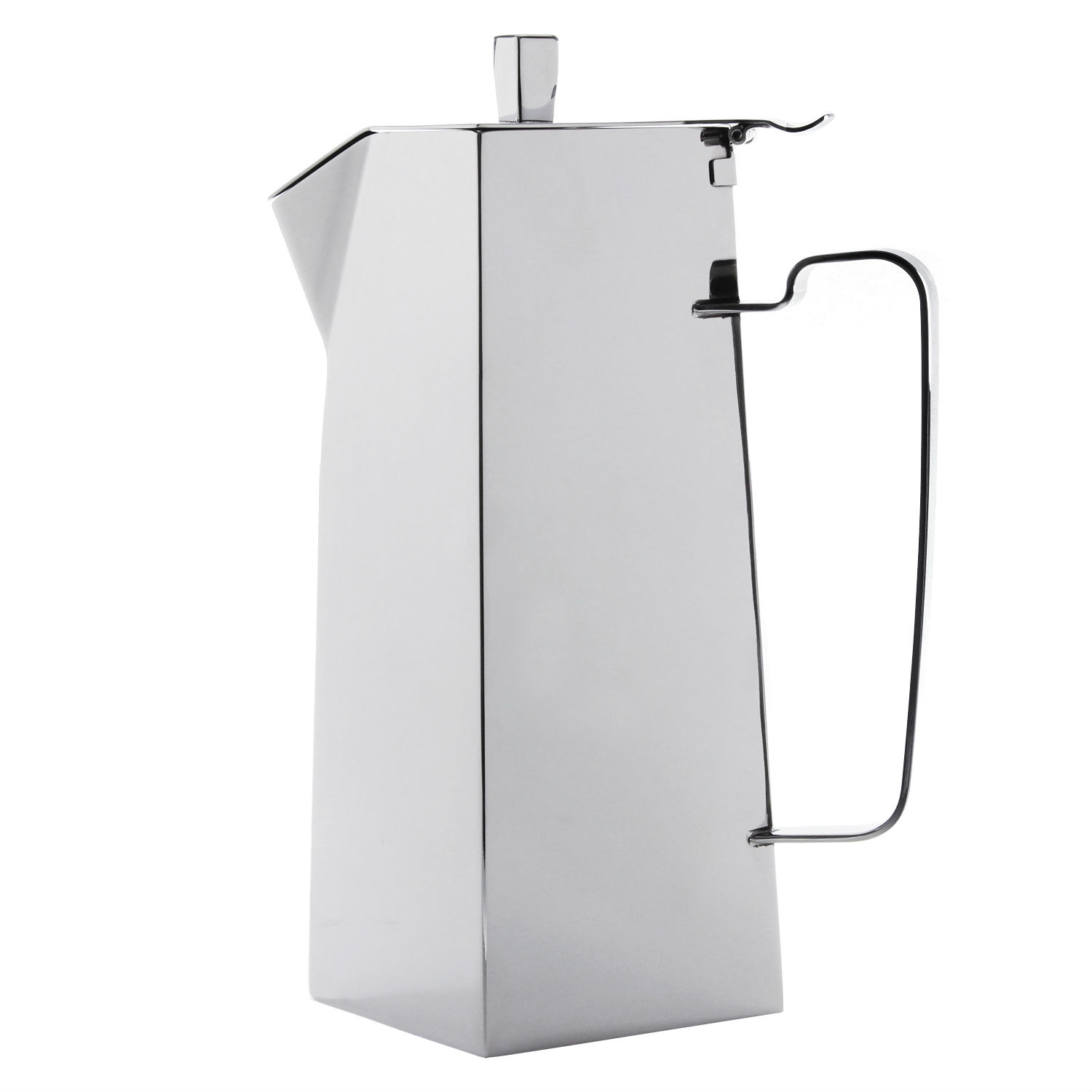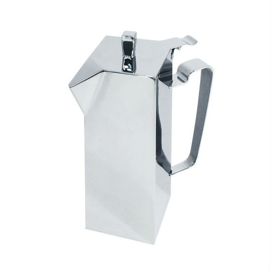 This traditional metal pitcher gives a hint of stylish touch with its unique square shape. The server features a lift-up lid and a flat handle is made for easy transport. Manufactured from 18/8 premium stainless steel, this item has a heavy-duty construction for added durability.