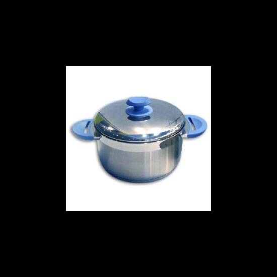 This stainless steel pot is embedded with an induction capsule bottom to allow induction cooking