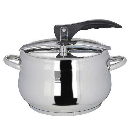 The meticulously manufactured pressure cooker boasts a wide construction to achieve an even larger volume. The matching lid keeps pressure in for efficient cooking while preventing spilling. The ergonomic handles on the side provide a comfortable and easy grip for safe cooking. Show off your superb cooking talent with this stainless steel pressure cooker.