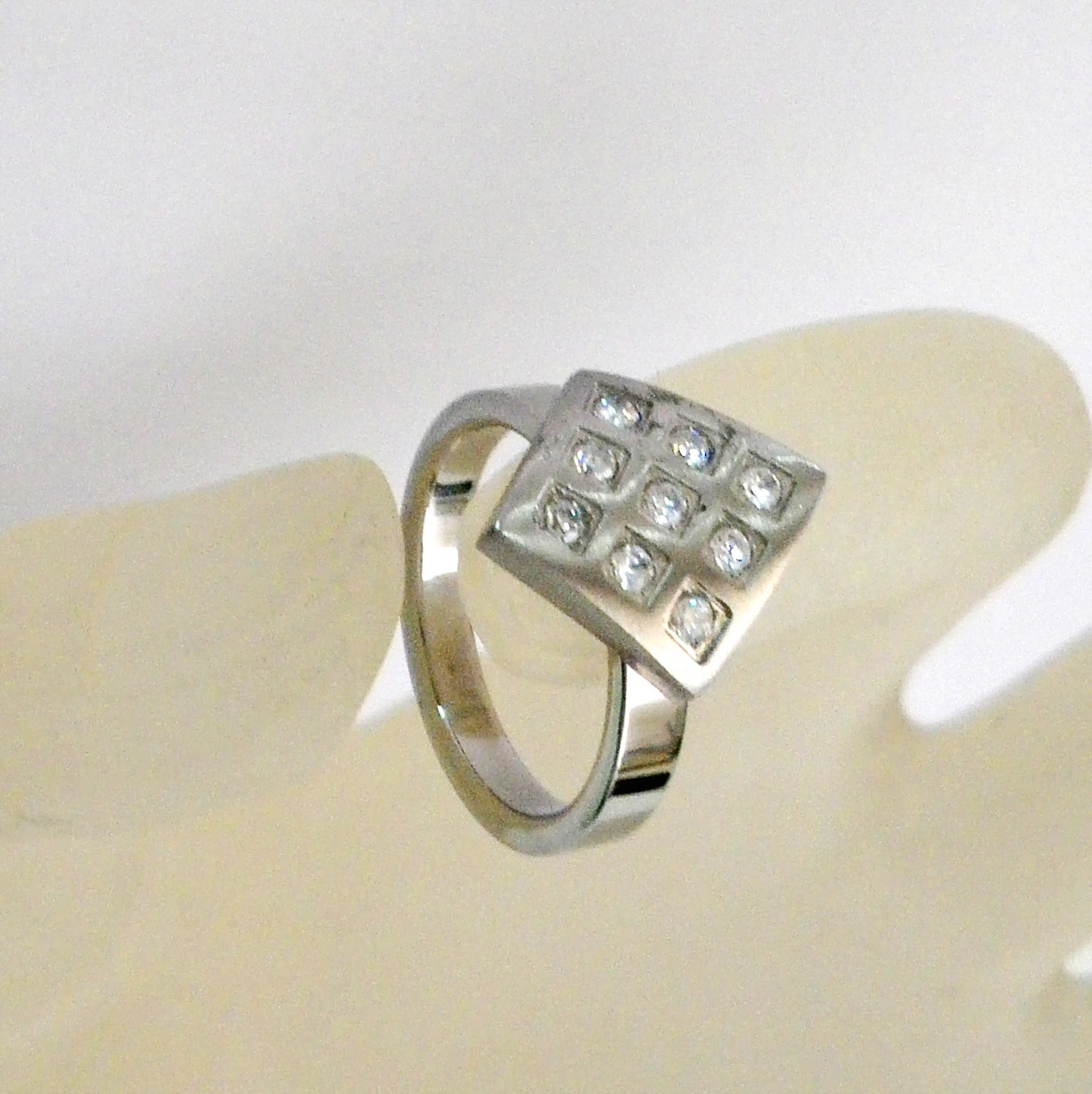 The jewelry ring boasts ridged engraving with a polished finish. It is adorned with faceted round stones for added style. Show off your style with this jewelry ring.
